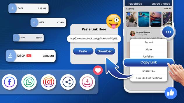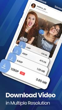 Using this "Video saver for facebook without water mark" you can easily download video or movie. This "easy & quick video downloader" also provides different resolution for downloading videos/movies.