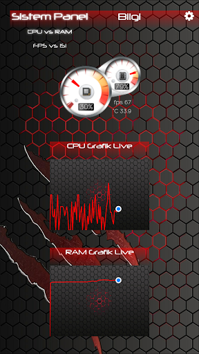 Jalankan CPU RAM Monitor.Kemudian buka aplikasi yang anda mahukan.Anda menunjukkan kepada anda penggunaan CPU dan RAM dengan grafik segera.Malah penunjuk FPS dan peranti boleh melihatnya pada haba anda, anda boleh memindahkan skrin ke mana-mana sudut mana-mana sudut yang anda mahu.
