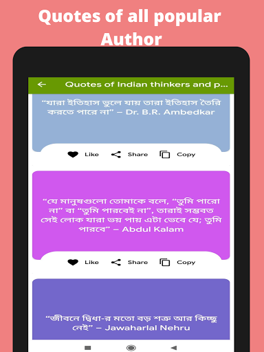 The App has a good UI and very easy to read and copy the status and quotes which you can share on your Instagram, WhatsApp status and FB status.