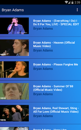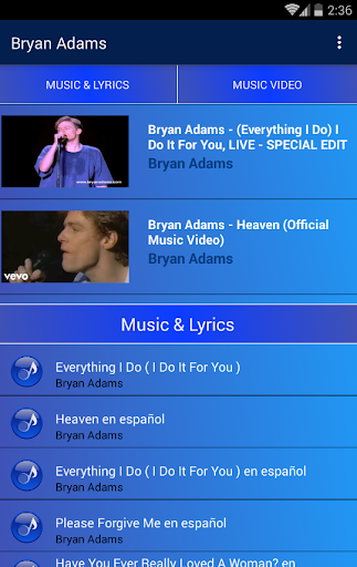 Free Music, Lyrics and Videos Apps "Bryan Adams" for you fans.
