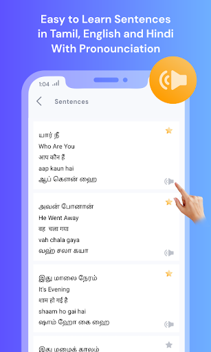 - App has a basic collection of words and sentences that are translated in Tamil, English and Hindi languages.