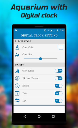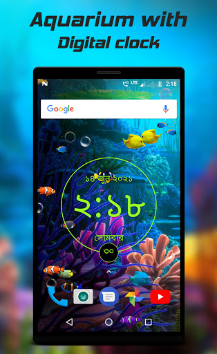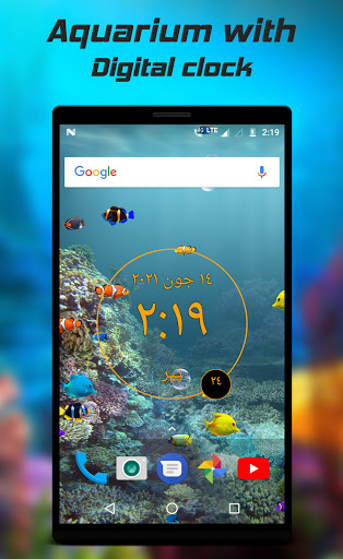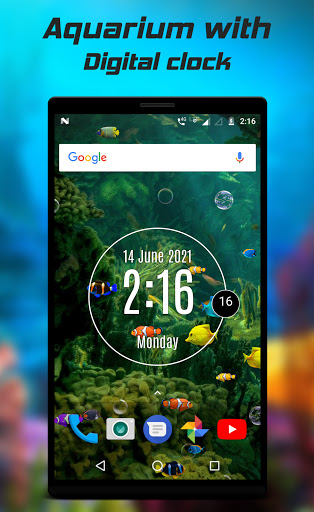 Aquarium with digital clock live wallpaper is a free app with premium functionality. LED digital clock live wallpaper contain date, time in 12/24 hour format and also with day of week.