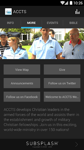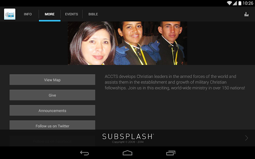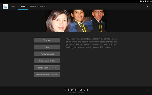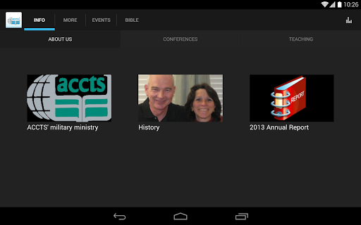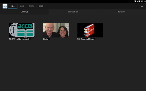 Welcome to the official (ACCTS) Association for Christian Conferences, Teaching and Service application for the Android.