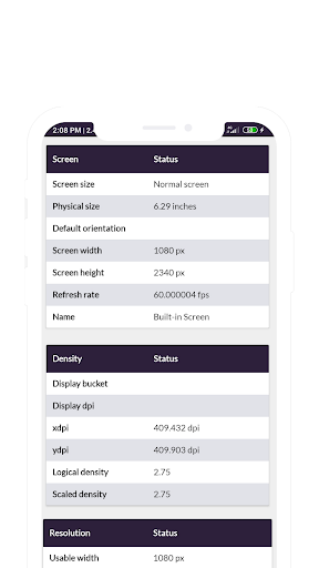 😎 Display Information : Reports information about screen resolution, pixel density and aspect ratio.