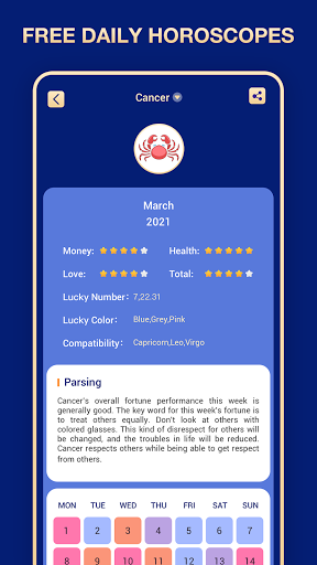 This is a very professional fortune prediction software, whether you want to know about love, career or ordinary life, they can be able to predict. No matter what your zodiac sign is, you can easily understand the free daily horoscope and get ready for a new day. It will provide you with detailed constellation information based on your constellation, such as lucky numbers and colors, etc. Come and understand what your own constellation is like.