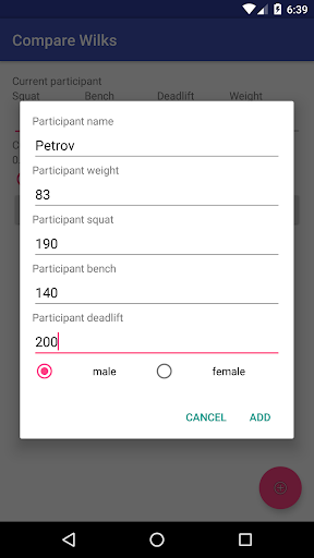 Небольшое приложение которое позволяет Вам с удобством подбирать необходимый вес для победы своих соперников, где победа считается по коэффициенту Вилкса.