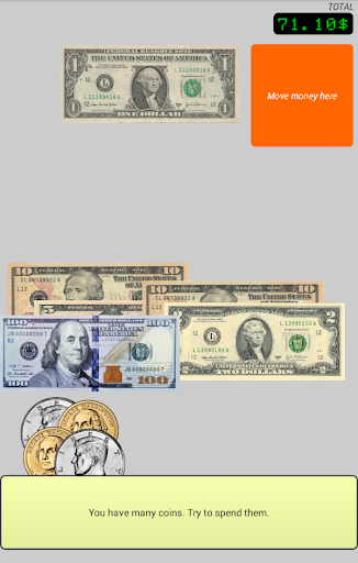 You will see the coins and banknotes of your cash register. Further a random amount under TOTAL is displayed. At the same time at the top of the display banknotes appear that you have just received from your customers. This amount is also displayed in the field marked as RECEIVED. Your task is to move the correct change money to the orange box, and finally press the "Confirm" button. Cash Trainer now checks the change and tells you whether you have calculated correctly. Then the next amount to be paid appears and the procedure is repeated.