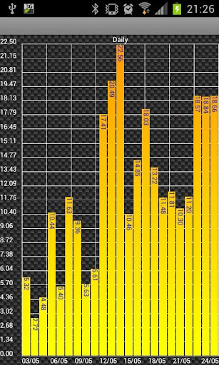 Historical daily totals (kWh) data viewing by scrollable bar chart.