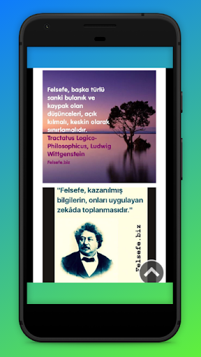 Uygulamamız felsefe ile ilgili genel bilgiler vermekte, ünlü filozofların sözleri ile felsefeyi özetlemektedir. Her gün ünlü bir filozofun özlü bir sözünü uygulamamızın açılış sayfasında bulabilirsiniz. Site ve uygulama içeriği felsefe mezunları tarafından hazırlanmaktadır. Felsefeye merakınız var ise mutlaka cep telefonunuzda olması gereken bir uygulama.