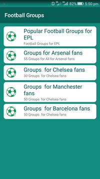 Groups added frequently including top England football clubs groups, Spanish football groups, football news, football fan groups, fixtures, discussions.
