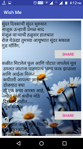 Wish Me is the collection of festival messages and good morning, good night and Birthday messages in various languages (Marathi, Hindi, English).
