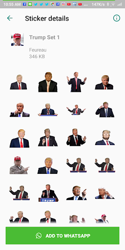 When we make a sticker pack, we put in the very best stickers. This pack contains a yuuuuge number of stickers, 14 packs of them to be exact, featuring the Greatest United States President Donald Trump and his wife and colleagues. That's right folks, you'll never find a more epic collection of Donald Trump stickers on the entire internet.