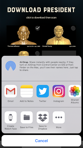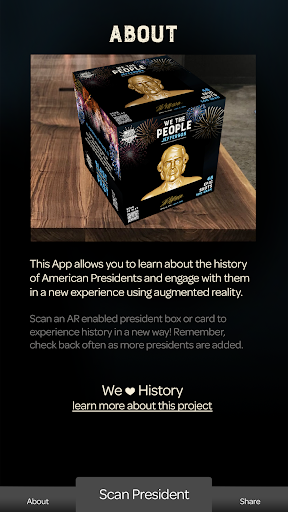 Our app gives users a glimpse of the past with augmented reality. They can download and scan different founding fathers and historical figures and see what they looked like and hear what they might have sounded like. They’ll tell you about their accomplishments and legacy in a fun, engaging way.