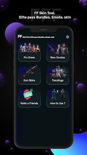 FFF is a free app that allow users to entertain by getting Elite Pass Bundles , Emotes & powerful Gun Skins for battlegrounds !