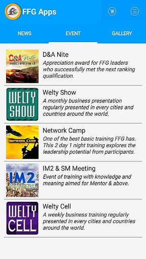 FFG Apps adalah support untuk pengembangan bisnis bagi para member dalah hal mencari ataupun mendengar materi materi training terbaru