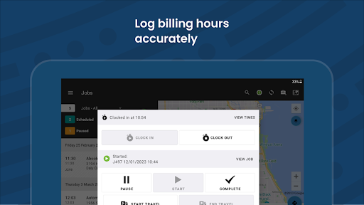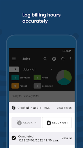 * Start, pause, or complete jobs on the fly, with automatic time tracking.