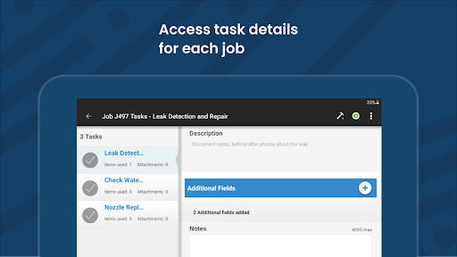 * Receive and create jobs with full access to customer, contact, location, task and product data/pricing.