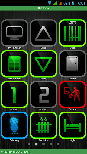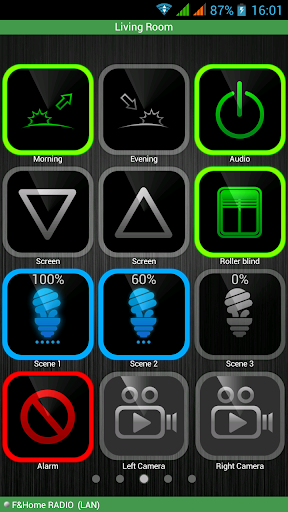 The F&Home application allows the user to remotely control devices that service the building or consitute an integral part of the building services. The application requires access to a F&Home RADIO server, which allows configuration of a network of devices according to the users' preferences, as well as the configuration of intelligent building management systems that include: