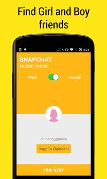 With this app you can discover and chat with thousands of online users for Snapchat. You can search for a male or a female friend and this app will show you a random online user from our database.
