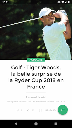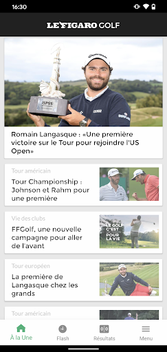 🥇 ¡Feliz lectura con Le Figaro Golf! Artículos de golf, fotos y videos, la aplicación Figaro Golf le permite seguir y no perderse nada de las noticias de golf. Noticias de golf y puntajes en vivo en su aplicación Figaro Golf. En resumen, las noticias de golf reales con la aplicación Figaro Golf.