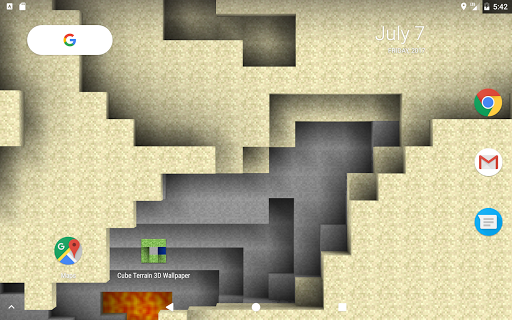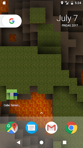 A computer-generated landscape inspired by the popular exploring and crafting game. Explore as you swipe through your home screens and see the depths of the caverns as you tilt.