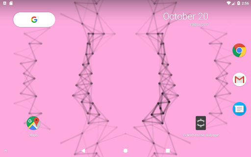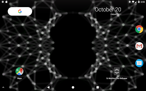 A live wallpaper inspired by the end credits animation of the Alex Garland film, Ex Machina. Touch the screen to create ripples of points that interact with the mesh. Tilt for a 3D parallax depth effect*.