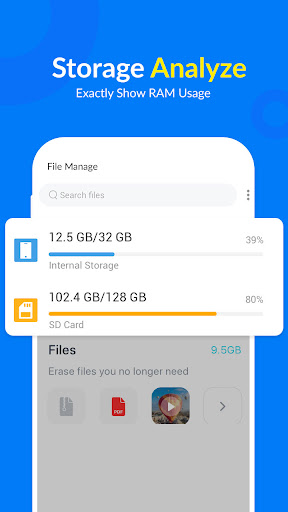 File Manager can help you optimize your phone with powerful junk files cleaner, phone booster, app manager, CPU cooler, Music player, Video player and file transfer.