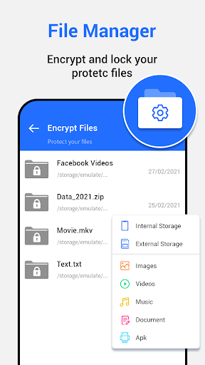 File manager: Now you can easily secure your personal data like videos pictures etc. with our file manager app. This app provides full security to your android phone.