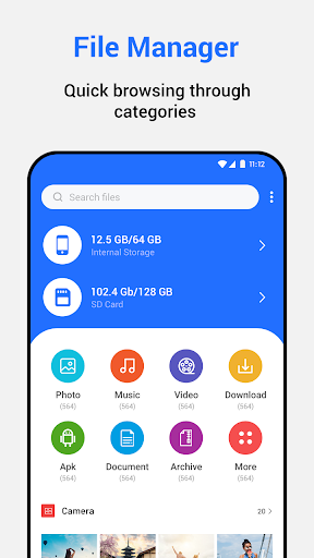 File Manager help Android users to manage mobile phone files and preview media categories such as videos, audios, pictures, and many more! Users can also access to your SD card, browse, create, rename, copy, move and delete files.
