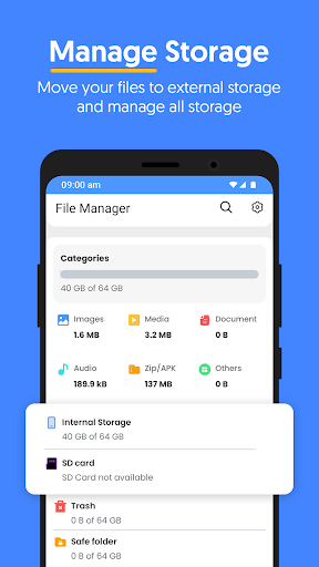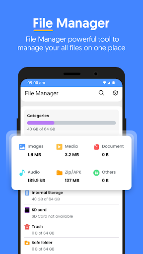 With Manage Files All in One, you can easily navigate through your device's storage and external SD cards, making it a breeze to locate and manage with files app. The intuitive File Explorer interface allows you to search, and sort files effortlessly, ensuring that you can find what you need in seconds.