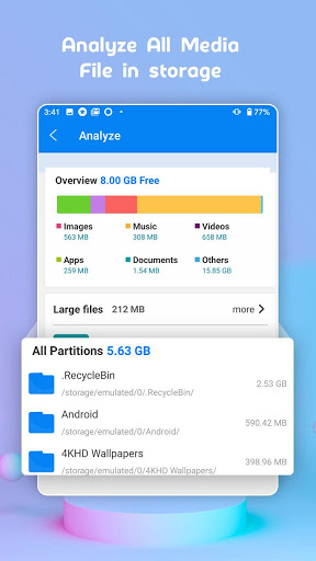 - Analyze the internal storage and show space occupied by various types of files
