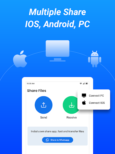 Quickly share photos, videos, music,document and files between mobile devices anytime or send anywhere.Share All types of files Transfer,