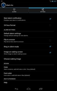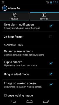 Alarm settings: