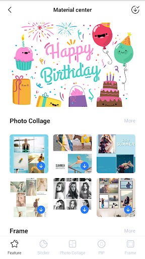 Material Center: To provive you a better experience, we put all the material resources together here, you can easily find and download those resources to decorate your beloved photos.