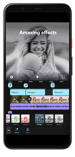 Video editing effects: Glitch, Blur, Disco...