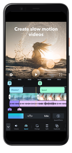 In free video editing app,adjust & control speed of video clips, to make