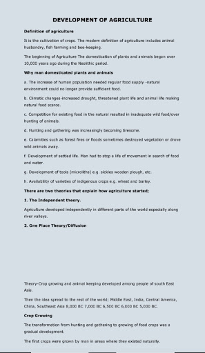-Development of agriculture