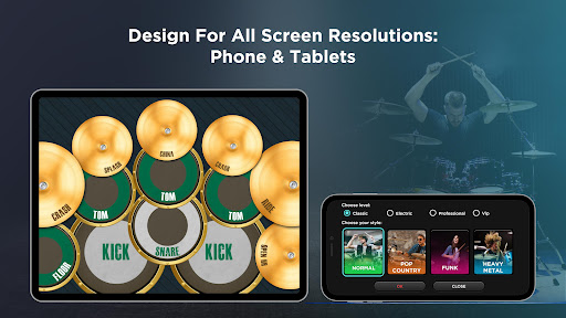 Digital Drum turn your phone or tablet into a Real Drum Kit. Use your finger as a drumsticks. And all you need is tap on the drum pads to make a amazing music.
