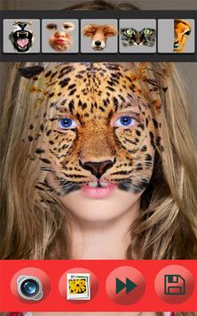 Take Pictures using camera or choose from photo gallery and open in the photo editor , add funny effects of animals from library and adjust properly.