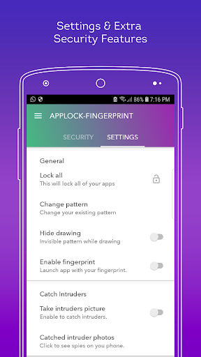 Too many people are thinking of privacy & security. No need to worry now your data is fully protected in app lock with password (pattern, fingerprint lock).App Lock has different theme with visible and invisible pattern lock. Advanced Protection Protect privacy & Ensure security. Single Tap to set locked apps and unlocked apps. App locker is Lightweight & Powerful android application.