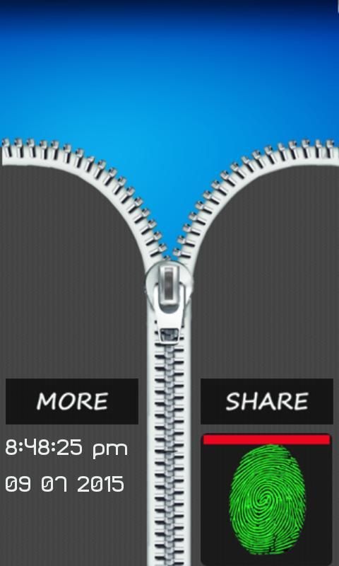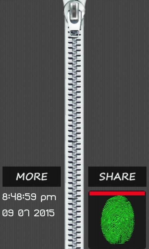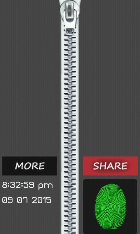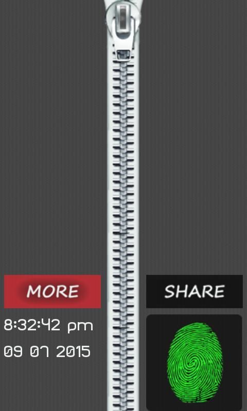 Finger print zipper Lock prank is the one of the best android screen lock application. It is based upon the idea of finger print and zipper, which makes your phone screen amazing and attractive. Touch your thumb or finger on the finger print image for few seconds to open this screen lock. Unzip the zipper by pressing your finger on finger print image. This application is prank and developed for fun and entertainment purpose only. It simply responds to the touch. Just touch the finger print image for a short time to unlock. There is no real finger print scanner, it’s only finger print image that works with touch.