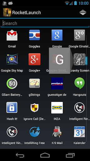 This launcher enables fast scrolling within an indexed list. The alphabetical index appears if the list of apps is sufficiently long.