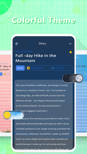 🔅 Choose your favourite theme for the app’s display: Colors can show your personality clearly and you will be more interested in writing journals