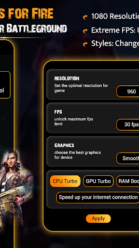 Using this GFX Tools for Fire : FPS Booster for Battleground app you can adjust resolution as per your device and also set FPS Booster, Headshot , Sensitivity , optimize & minimize ping .