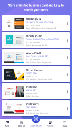 ✔Scan any Visiting card/ Business card with a single tap. Read business cards with ease and additionally scan cards using QR code.