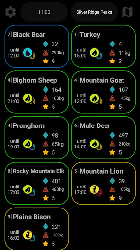 time, and the map you're playing, and a list of all the animal need zones as well as diamond rating, class max level, weight and callers will pop up, all in one place!