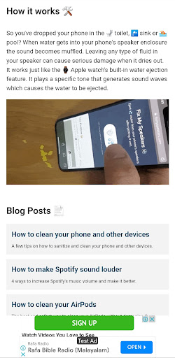 So you've dropped your phone in the 🚽 toilet, 🚰 sink or 🏊 pool? When water gets into your phone's speaker enclosure the sound becomes muffled. Leaving any type of fluid in your speaker can cause serious damage when it dries out. It works just like the ⌚️ Apple watch's built-in water ejection feature. It plays a specific tone that generates sound waves which causes the water to be ejected.