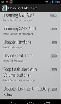 Flash Light Alerts pro controls the flash light for calls, sms and other notifications. This way you can be notified by your flash light for every notification.