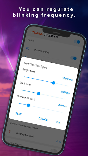 This function can boost user comfort or help a disabled user. You also have the option of receiving flash notifications over a certain time and changing the frequency of blinking, like whether you want slow or high flash alerts. The phone mode from within the app is controlled by standard, quiet, and vibrating mode. You can customize blinking in-depth with on or off.🔦