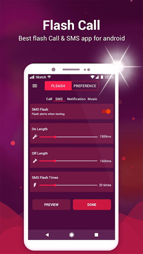 ✔ Choose your incoming SMS flashlight free, flashlight call, blinking flashlight mode from several ones.